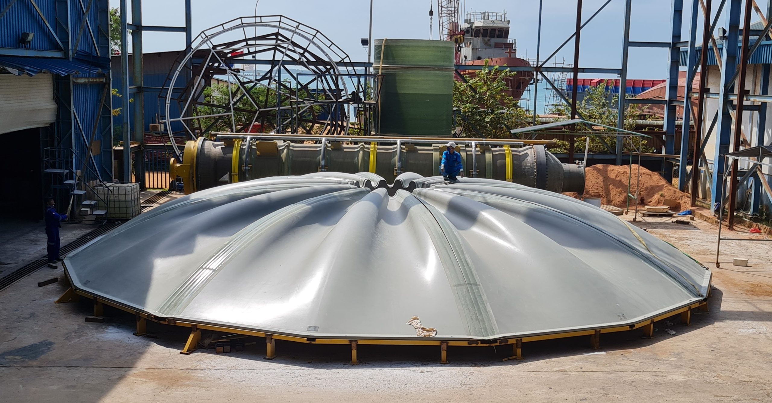 The customer, John Holland required a bespoke solution for this complex intake structure which needed a large diameter cover for the top of the Intake structure. RPC scoped, designed, engineered, manufactured, delivered and assembled the 15m diameter cover that will operate 20 meters below sea level. GRP was selected as the material of choice for its unparalleled high-corrosion resistance, low-maintenance and ability to deliver and an asset life of 50-years plus.